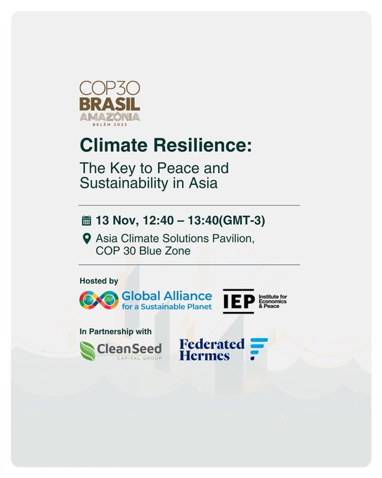 @GlobPeaceIndex Join us at #COP30 for a high-level dialogue on how climate resilience can underpin peace and sustainable prosperity. 🔗Register noluma.com/722i8tj5b5E Explore how data, finance, nature-based solutions, and intergenerational diplomacy can come together to strengthVwI